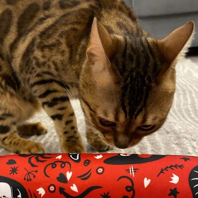 Die große Spielrolle aus der Crazy Kollektion verspricht ungebremsten Spielspaß. Das verrückte Stoffdesign lädt zum ausgelassenen Toben oder auch entspannten Kuscheleinheiten ein. Gefüllt mit natürlicher Baldrianwurzel oder unserer bewährten 4catsnip (Katzenminze & Silver Vine), bietet die robuste Rolle selbst den wildesten Stubentigern die ideale Kratz- und Spielmöglichkeit.