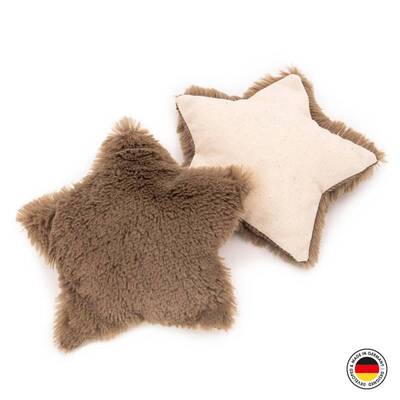 Der Fluffy Stern besteht aus weichem Plüsch auf der einen Seite und robustem Nesselstoff auf der anderen Seite. Katzen werden es lieben, sich an den flauschigen Stern zu kuscheln und damit zu spielen.