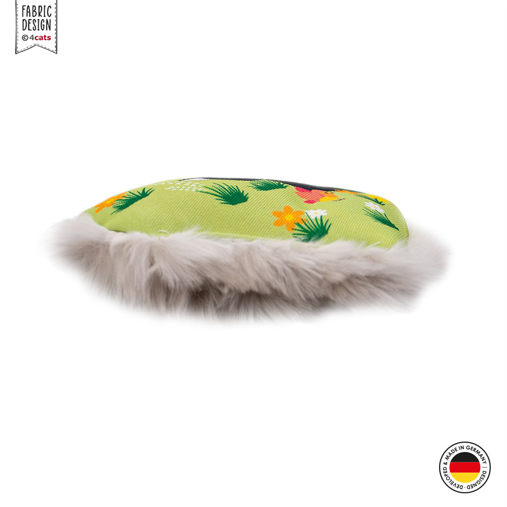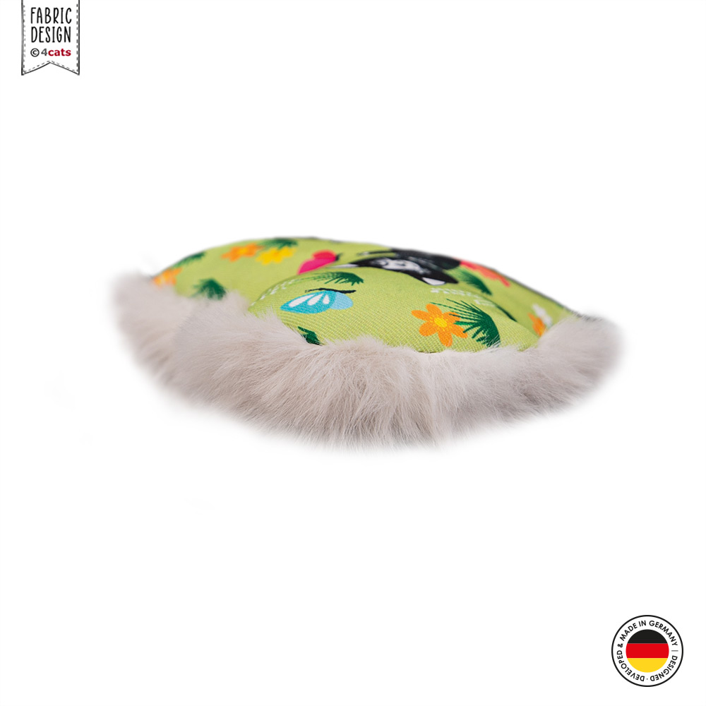 Auf der einen Seite wartet ein superweicher, flauschiger Kuschelstoff zum Anschmiegen, auf der anderen Seite sorgt ein fröhliches, farbenfrohes Lucy-Design für gute Laune im Katzenalltag.