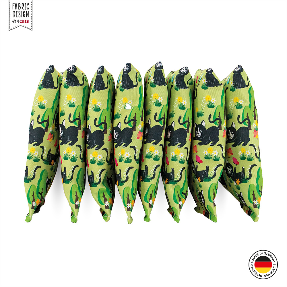Die aromatische Füllung mit wahlweise Baldrian oder 4catsnip (Katzenminze & Silver Vine) weckt die Neugier der Tiere und sorgt für langanhaltenden Spielspaß. Zusätzlich animiert das im Inneren integrierte Knisterpapier den Hörsinn der Katze und fördert ihre natürliche Spielfreude sowie die geistige Aktivität. Hochwertige, schadstoffgeprüfte Materialien und eine sorgfältige Verarbeitung machen dieses Produkt zu einer attraktiven Ergänzung in jedem Fachhandels-Sortiment.