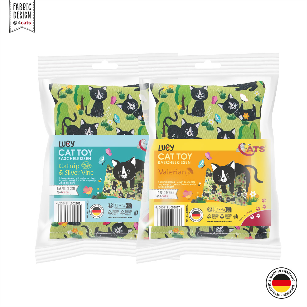 Das farbenfrohe Raschelkissen aus der Lucy Kollektion ist das ideale Spielzeug für aktive Katzen. Mit dem auffälligen Lucy-Design wird es zum echten Blickfang im Verkaufsregal und spricht Kunden an, die Wert auf originelle Optik und Qualität legen.