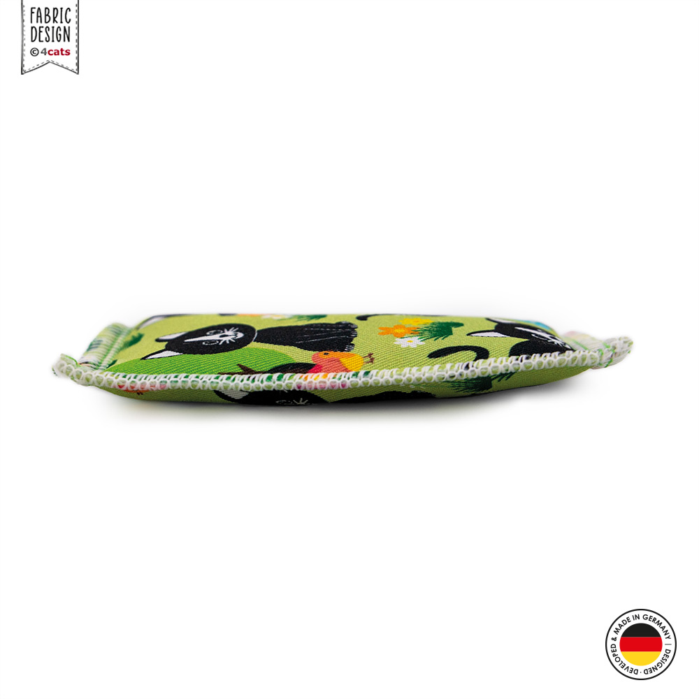 Und natürlich darf Lucy selbst nicht fehlen: Frech und neugierig schaut sie von der Stoffoberfläche hervor und sorgt für gute Laune – bei Mensch und Katze. Gefüllt mit hochwertigen, schadstoffgeprüften Materialien und einer anregenden Portion 4catsnip (Katzenminze & Silver Vine) oder natürlichem Baldrian – für langanhaltenden Spiel- und Schmusespaß.