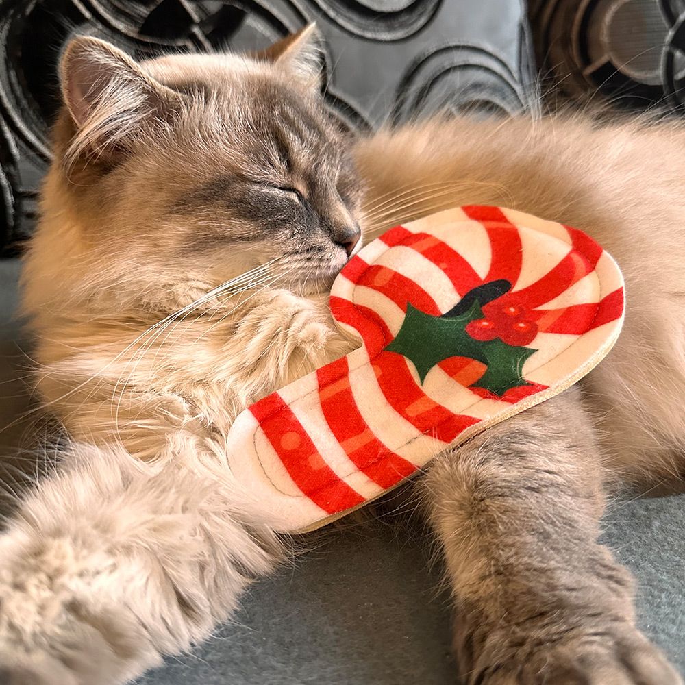 Was könnte schöner sein als ein Spielzeug, das so süß ist wie Fellnasen selbst? Die Mini-Zuckerstange ist gefüllt mit unserer speziellen 4catsnip-Mischung (Katzenminze & Silver Vine) oder natürlichem Baldrian – ein zuckersüßes Geschenk zur Weihnachtszeit, das Katzenherzen höherschlagen lässt. Diese 4cats X-Mas Mini-Zuckerstange ist ein appetitliches Katzenspielzeug für die festliche Jahreszeit. Gefüllt mit duftenden Katzenkräutern für gemütliche Schmusestunden unterm Weihnachtsbaum.